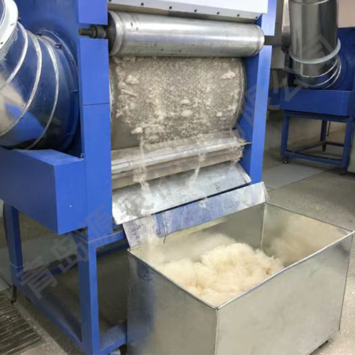 2.將開松下的原料通過負壓吸風方式自動喂入平梳機,降低了人工、節省了車間空間,提高了車間內部地面與設備的整潔度,是負壓全自動羊絨分梳線的必要產品。