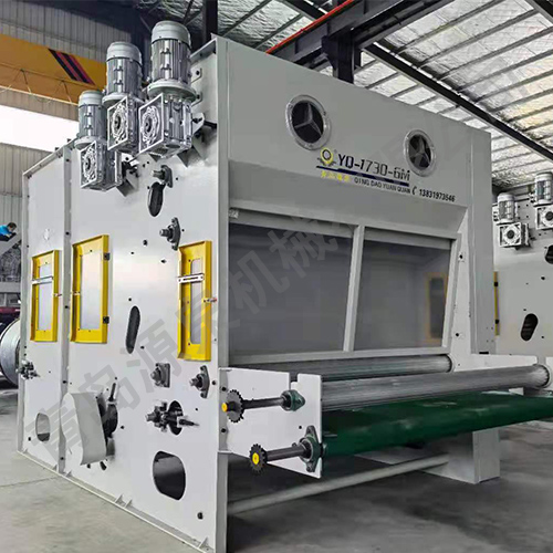 這臺(tái)機(jī)器用于將纖維(開(kāi)松和混合后)輸送到梳理機(jī)進(jìn)行下一道工序。采用容積式定量振動(dòng)喂入,光電控制,與主開(kāi)松光電聯(lián)動(dòng),給棉量更加均勻準(zhǔn)確。